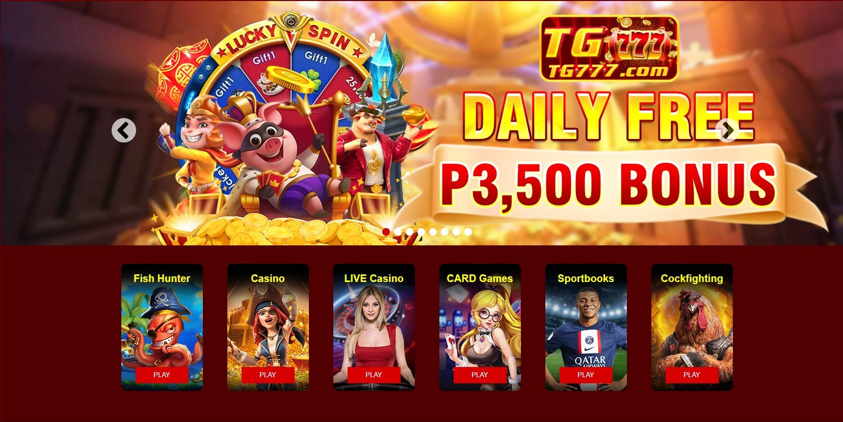 TG777 is a leading online casino in the Philippines, offering a wide range of games such as slots, live casino, fishing games, card games, lottery, and sports betting. We provide a secure platform and exciting rewards for all players.